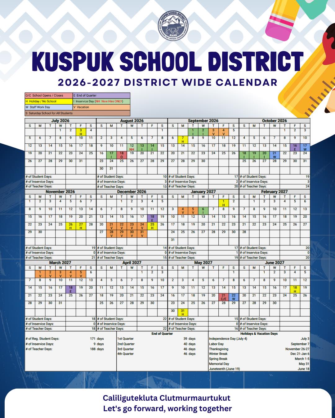 ᴋᴜꜱᴘᴜᴋ ꜱᴄʜᴏᴏʟ ᴅɪꜱᴛʀɪᴄᴛ 2026–2027 ᴀᴘᴘʀᴏᴠᴇᴅ ꜱᴄʜᴏᴏʟ ᴄᴀʟᴇɴᴅᴀʀ The Kuspuk School District School Board has approved the 2026–2027 District-Wide School Calendar.